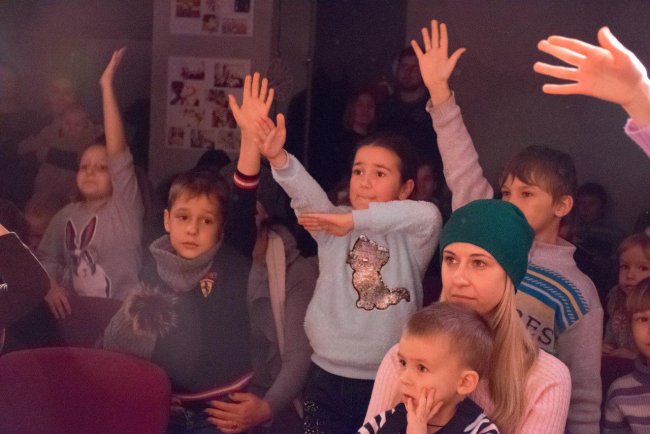 Хочу уточнити, що цього річ до вибору теми вистави було особливе відношення. Це чудово, коли дітям весело, але окрім позитивних емоцій хотілося і вказати на Того, чий саме день народження ми святкуємо. Тому різдвяна вистава у цьому році вийшла особливо глибокою та змістовною. І, звісно, ми хвилювалася, як вона буде сприйматися дітками молодшого віку. Та наші хвилювання виявилися марними. Діти дуже добре зрозуміли те, що ми хотіли їм донести. А один хлопчик, років 5-ти, сказав після вистави: «Я зрозумів! Якщо звернутися до Ісуса, то Він усім допомагає. Цей театр має іще до нас приїхати, щоб ми більше дізналися про Бога». Для нас це стало яскравим підтвердженням, що Бог усюди!