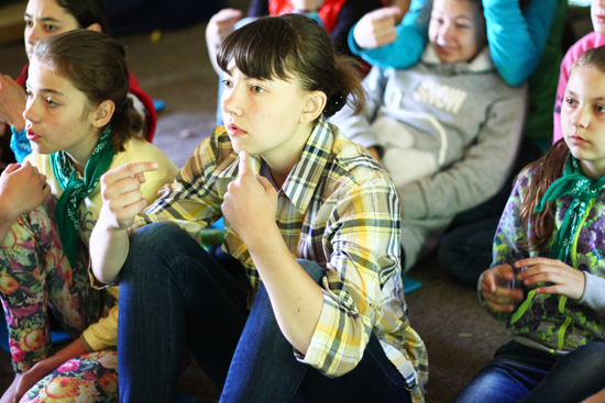 Навіть не знаю, якими словами передати вам ті відчуття, коли ти стоїш у такому знайомому амфітеатру, дивишся на таку давно рідну сцену, чуєш давно вивчені напам’ять вірші, і бачиш біля проповідника ще одну людину, яка мовою жестів перекладає все для діток, які приїхали відпочити до нас у табір.