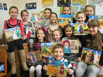 Під керівництвом Ганни Чуприни та Олени Мізіної ці діти створили чудові ілюстрації до нової книжечки про Рут - «Колосся край межі». Всі учасники проекту виконали ілюстрації у незвичайній техніці – аплікації з різнобарвних клаптиків тканини.