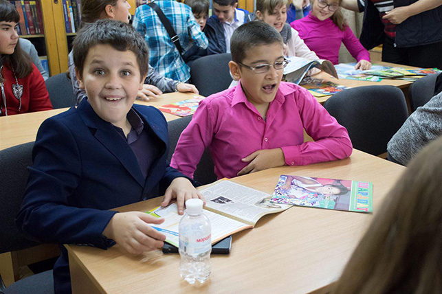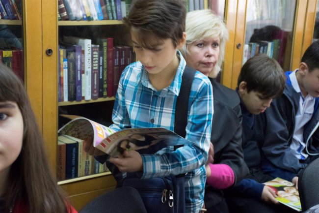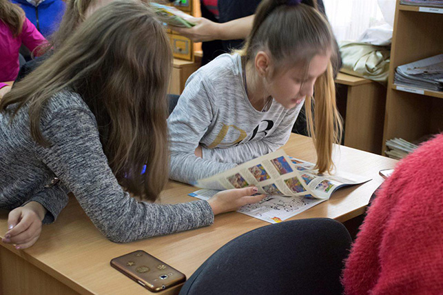 Шестиклассники очень внимательно и с интересом слушали рассказ художественного редактора журнала Анны Микусевич о том, как именно создается «Тропинка»: какие этапы проходит журнал перед своим появлением на свет, кто работает с текстами и иллюстрациями, сколько раз в год дети могут получать «Тропинку» и на каких языках она издается.