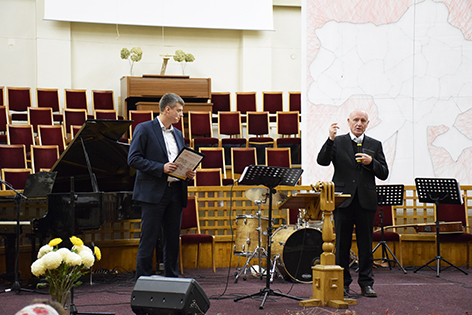Привітання та подарунок на згадку про ювілей ми отримали від Голови братства незалежних церков і місій ЄХБ України – Сергія Шаптали.