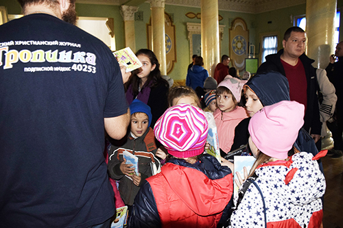 Діти були в захваті, а також учителі дякували нам і щиро раділи нашому візиту. Ми зробили спільне фото, після чого, звичайно ж, піднесли подарунки: журнал «Стежинка», аудіодиски з записом християнських книг, журналів і дитяча християнська книга.