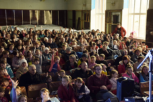 У смт Миронівське на нас уже чекали на вулиці. Напівпусте, майже мертве селище, яким ми пройшлися вранці, зараз було «прикрашене» дитячими різнокольоровими куртками. Поки ми поспіхом вносили все потрібне для вистави, разом із нами рікою заповнювали залу дітки зі своїми татами, мамами, бабусями й дідусями... Здавалося, наш приїзд — це подія для всього селища! І знову слухали з відкритими очима, а головне, з відкритими серцями.
