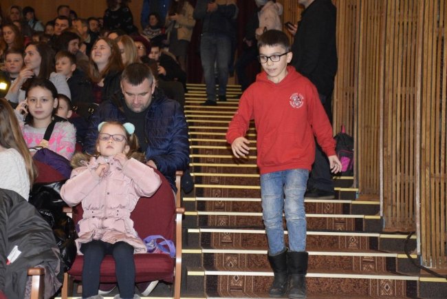 Что растопило лично мое сердце, что это была не обезумевшая толпа, врывающаяся в зал, после долгого ожидания, в попытках занять место получше (как это часто бывает у детей), но приятный «бриз» воспитанных детей и взрослых, которые постепенно наполняют зал полностью, до последнего кресла! Около 400 детей с их родителями, бабушками и дедушками!
