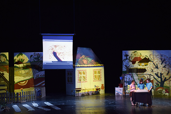 Дітки мали можливість намалювати подарунок для «Стежинки» в день її свята. Але це тільки тут, біля входу до театру. Найголовніше ж на глядачів чекало всередині - вистава «Добрі плоди та злі корені», яку підготували вихованці театру «Стежинка».