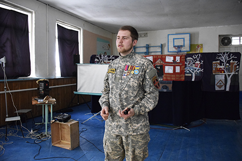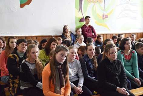 В іншій залі зібрали старшокласників, яким наш капелан Андрій Полухін розповів своє свідчення про Донецький аеропорт: про його перебування там й про ті чудеса, які Бог робив під час відомих сумних подій січня 2015 року. Ця розповідь мала реальний відгук у серцях школярів та вчителів. Багатьом дітям захотілося сфотографуватися з капеланом.