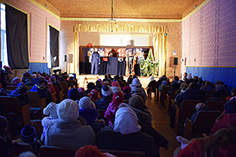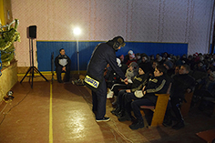 Дітей біля входу в зал зустрічають працівники місії, голова сільради та Юра Лисенко. Юра – це наш місіонер, який уже 3-й рік проживає у цьому селі. Багато працює з дітьми. Цього року Юра з дружиною започатковують клуб «Стежинка» для всіх бажаючих дітей. І сільська влада дозволяє використовувати місцевий клуб для проведення таких зустрічей. Слава Богові за такі відкриті стосунки.