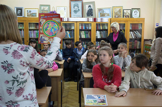 Шестиклассники очень внимательно и с интересом слушали рассказ художественного редактора журнала Анны Микусевич о том, как именно создается «Тропинка»: какие этапы проходит журнал перед своим появлением на свет, кто работает с текстами и иллюстрациями, сколько раз в год дети могут получать «Тропинку» и на каких языках она издается.