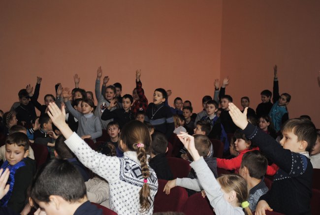 Місто Мирноград, колишній Димитров. Наш перший виступ в місцевій школі. Дивно чути вчителів, що говорять українською мовою. Нам залюбки надали велику залу, зібрали діток молодших класів і в усьому йшли нам назустріч. Навіть викладачі зацікавлено дивилися виставу, фотографували, знімали відео і дуже дякували. Як повідомив Ігор Туник, уже найближчої неділі до церковного офісу прийшло більш як двадцять діток, яких вони запрошували після вистави завчасно надрукованими запрошеннями. Усі дітки прийшли вперше, і всі вони з сімей, які не знають Бога. Ігор зателефонував нам і відразу сказав: «Радійте разом із нами!».