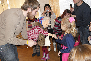 А наші ляльки – бабуся, дідусь, тінейджер, тварини, які ще кілька хвилин тому були на ширмі, зовсім не проти такого близького спілкування, чим невимовно радують малят!