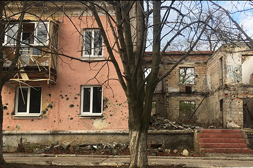 Графік у нас щільний: три вистави у трьох різних місцях, і всі заплановані на один день! Міста й селища маленькі, усі межують із лінією фронту. Відстань «до війни» лише 1,5-2 км. Чітко лунають вибухи, в будинках трясуться вікна від вибухової хвилі, іноді навіть трохи дрижить земля. Але люди живуть тут, ходять у магазин, а в м. Світлодарську навіть працює Будинок творчості для дітей і молоді. Саме в ньому і відбулася наша остання вистава. Але поки їдемо в сусіднє смт Миронівське. Це селище, де в прямому розумінні слова пройшлася війна. Сюди летіли снаряди, вибухали будинки, руйнувалося життя. Багато квартир і будинків із забитими вікнами, звідти поїхали й поки не поспішають повертатися люди. На будинках написи з вказівниками на укриття, де можна було заховатися під час бомбування. Просто із землі стирчать нерозірвані снаряди. Але мене здивувало, що, незважаючи на пережиту розруху, навіть у будинках із вибитими від вибухової хвилі або уламків вікнами вже встановлюють нові, пластикові. Ведуться ремонти й облаштовується все наново. Це дає надію і усвідомлення, що життя продовжується, що люди вірять у майбутнє і чекають на закінчення війни.